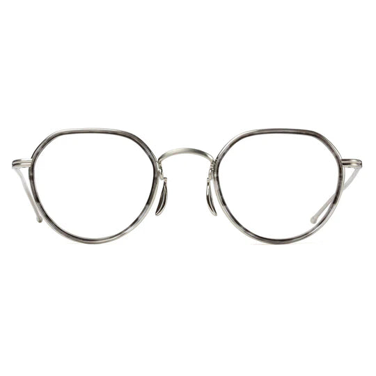 This is the first Mr. GENTLEMAN EYEWEAR using mechanism called MANRAYAMA, which integrates the bridge and nose pad in one single part.It creates a neat impression around the nose and brings out the face features.It is the coexist with the classic round frame and Mr. GENTLEMAN's modern taste impression.Embrace individuality through this Crown Panto design.