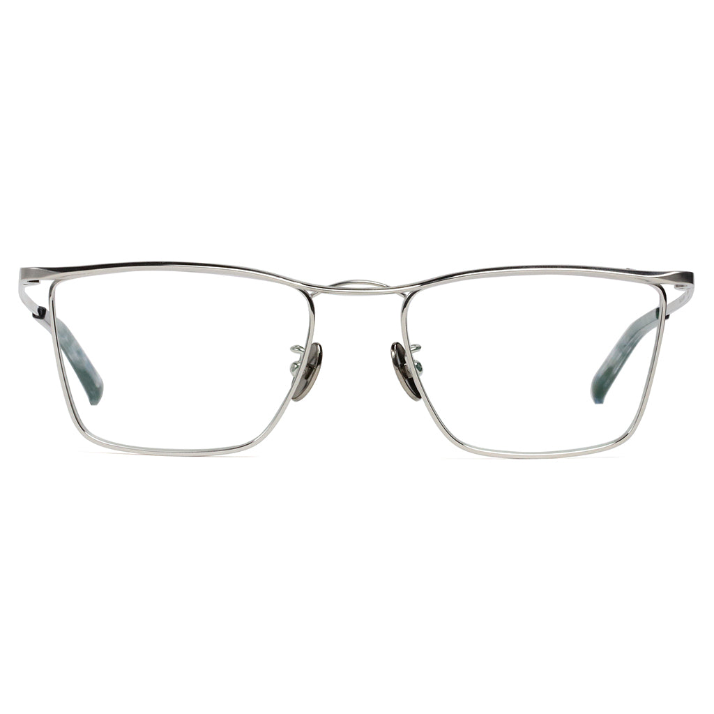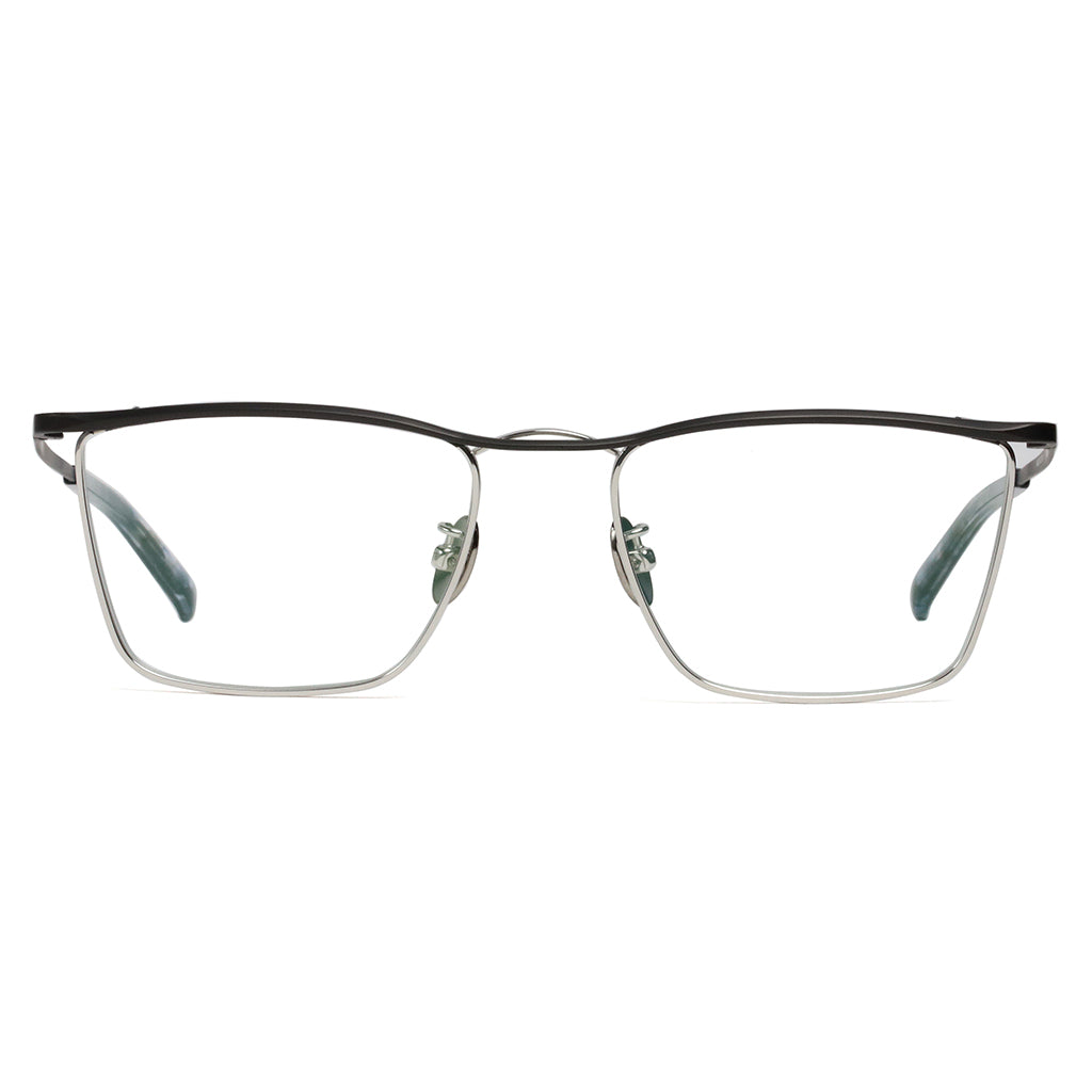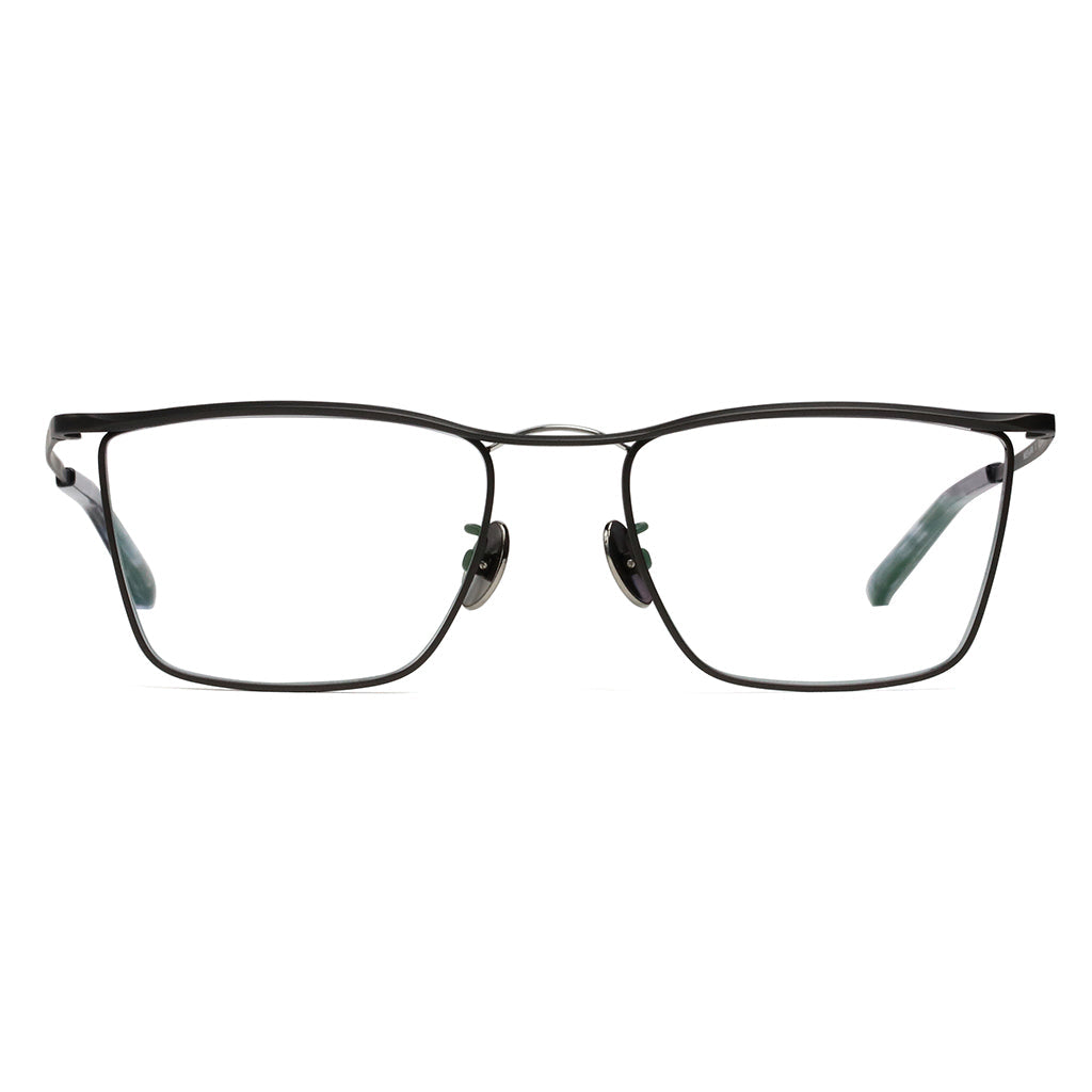 New twin bridge model that incorporates the timeless aesthetics of MR.GENTLEMAN. Line of sight tends to focus on characteristic bridge, but its three-dimensionally cut eyebrow decoration also shines with the craftsmanship of Made in Japan. Sharp and modern style with angular-shaped lens.