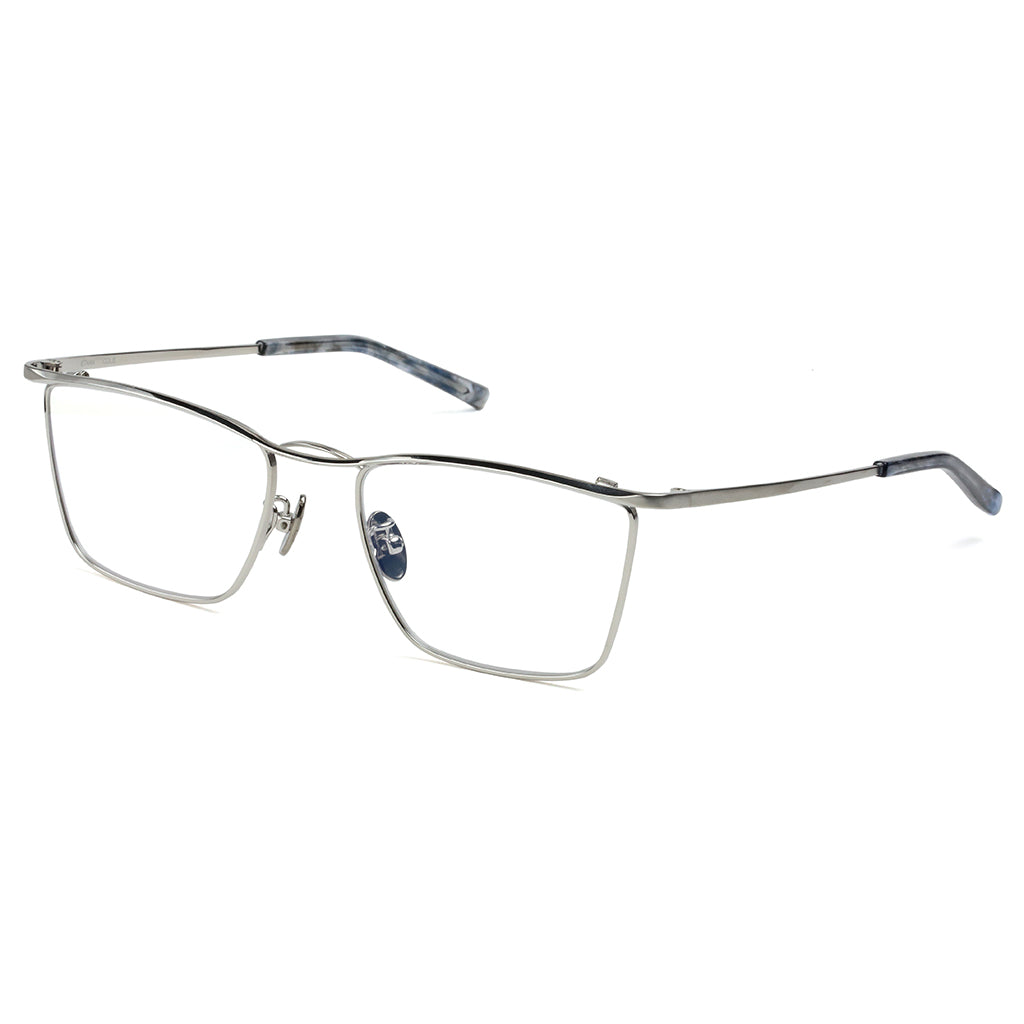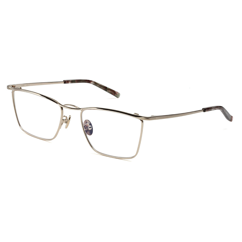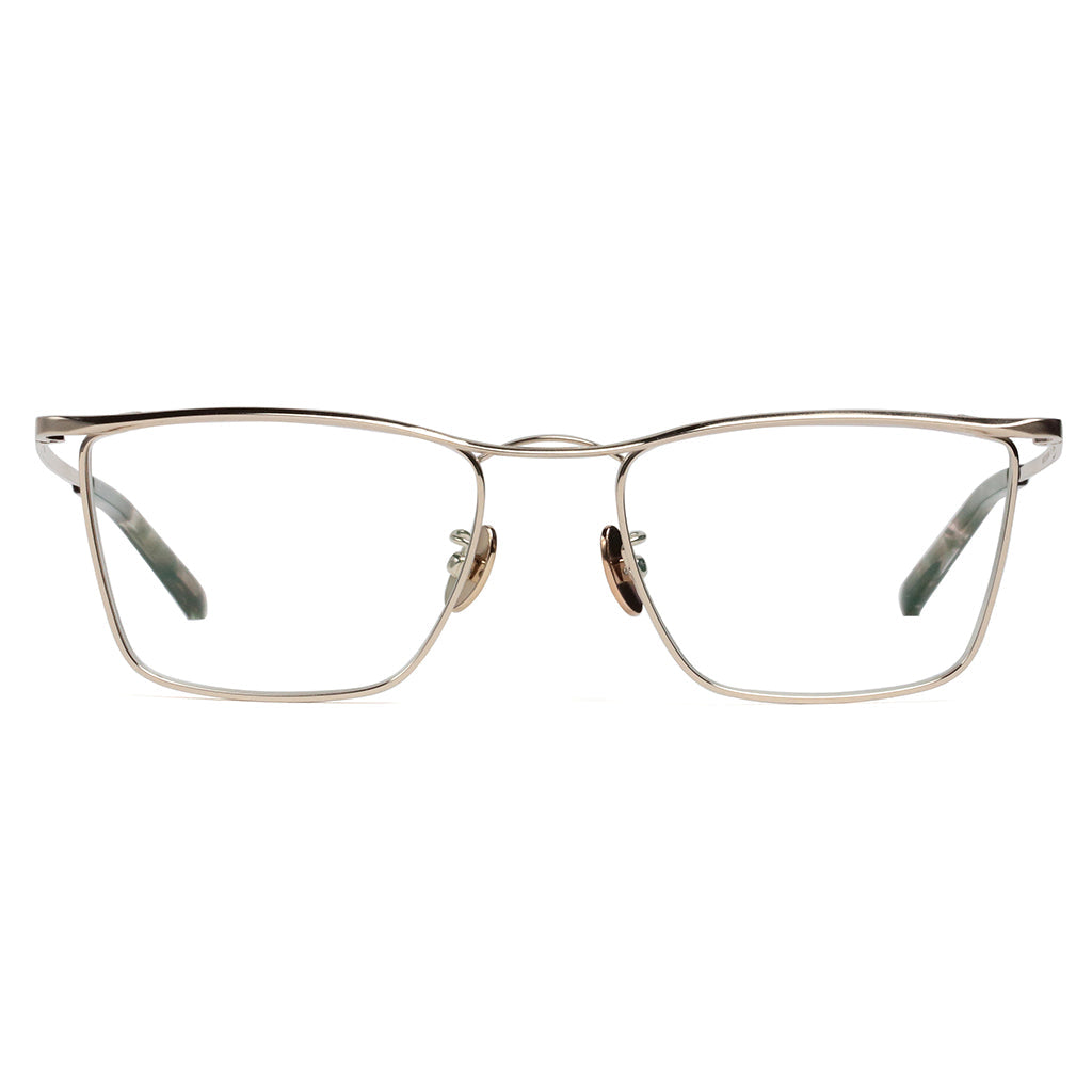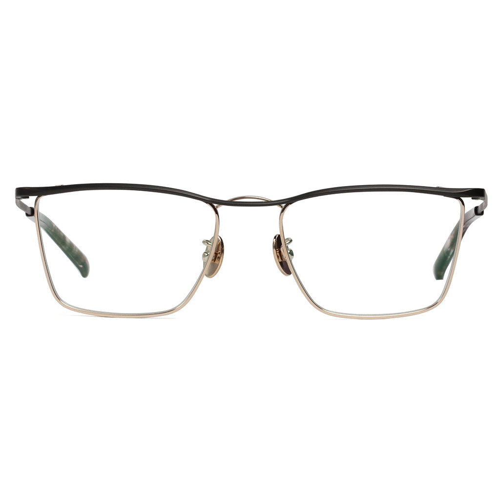 New twin bridge model that incorporates the timeless aesthetics of MR.GENTLEMAN. Line of sight tends to focus on characteristic bridge, but its three-dimensionally cut eyebrow decoration also shines with the craftsmanship of Made in Japan. Sharp and modern style with angular-shaped lens.