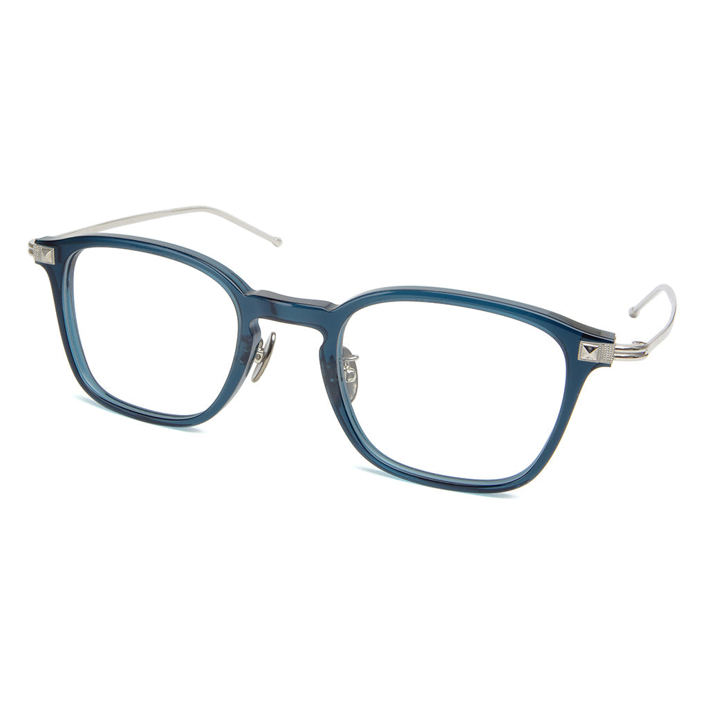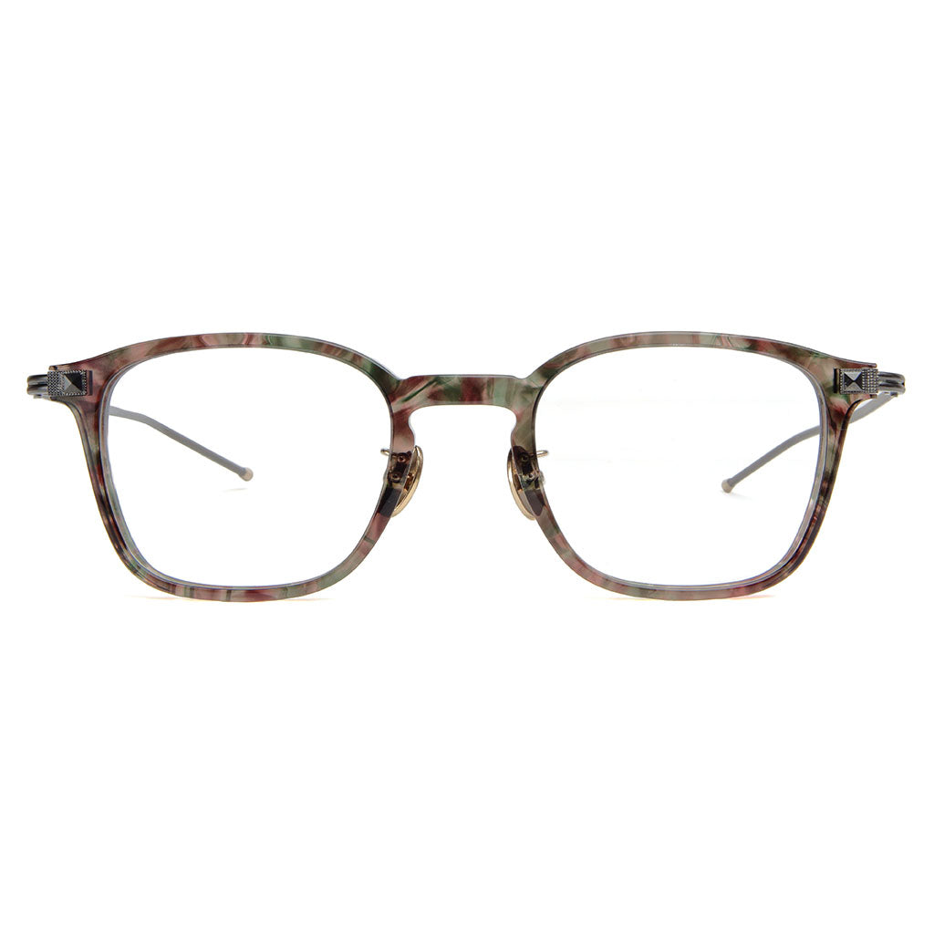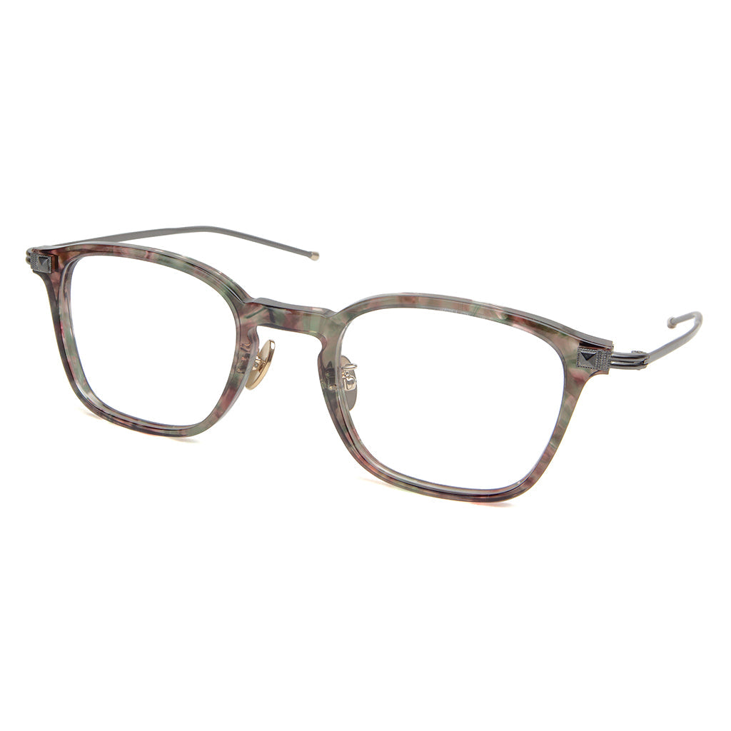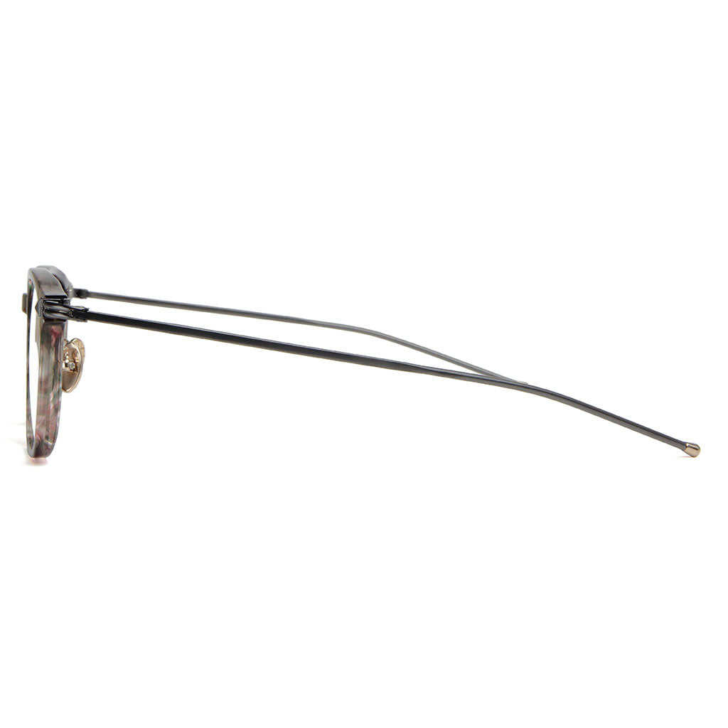 A model featuring front metal parts incorporating studs into the design.By combining beta-titanium temples with shape memory, the glasses frame is comfortable and holds well. Original titanium pads, which are grooved in a lattice shape, are resistant to slippage and have a structure that assumes long-time wearing. FRANCOIS is a classic Wellington design, which is easy for women to wear because of its wide range of top and bottom.