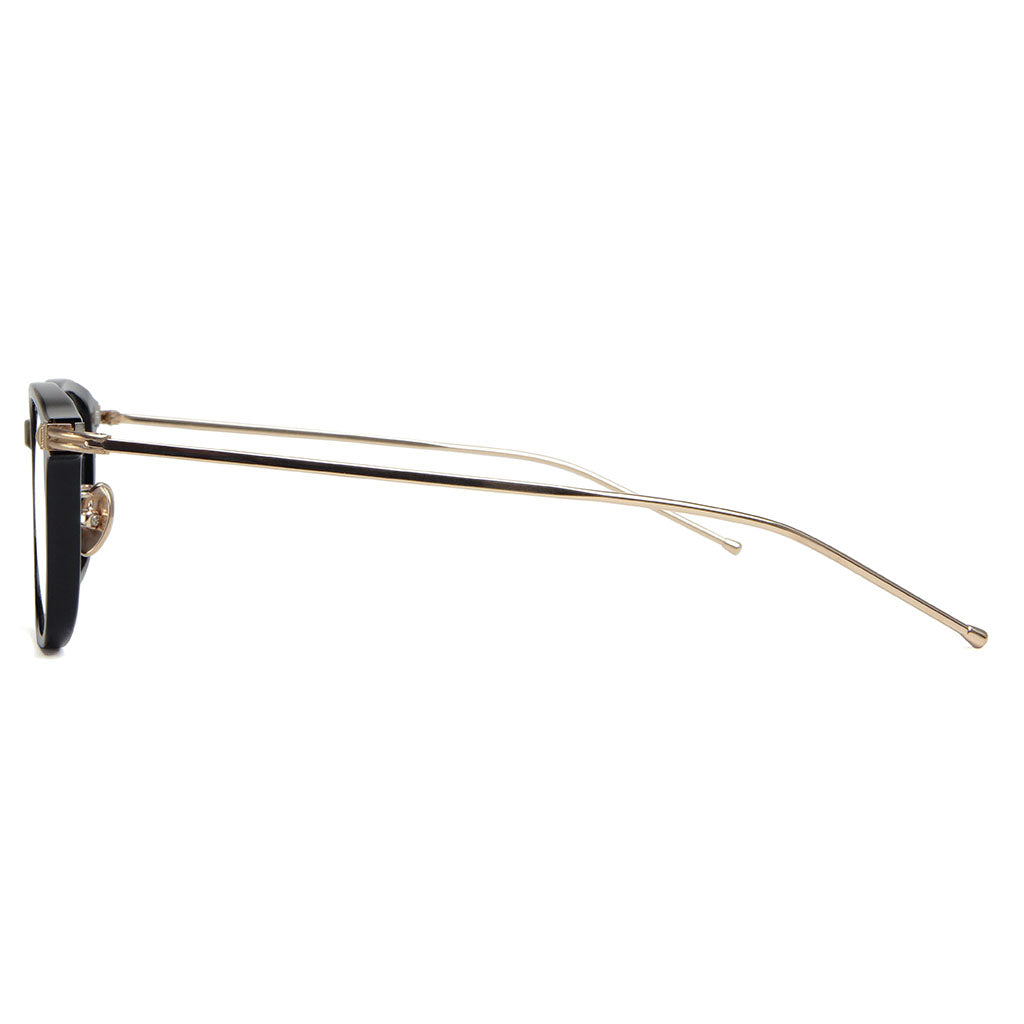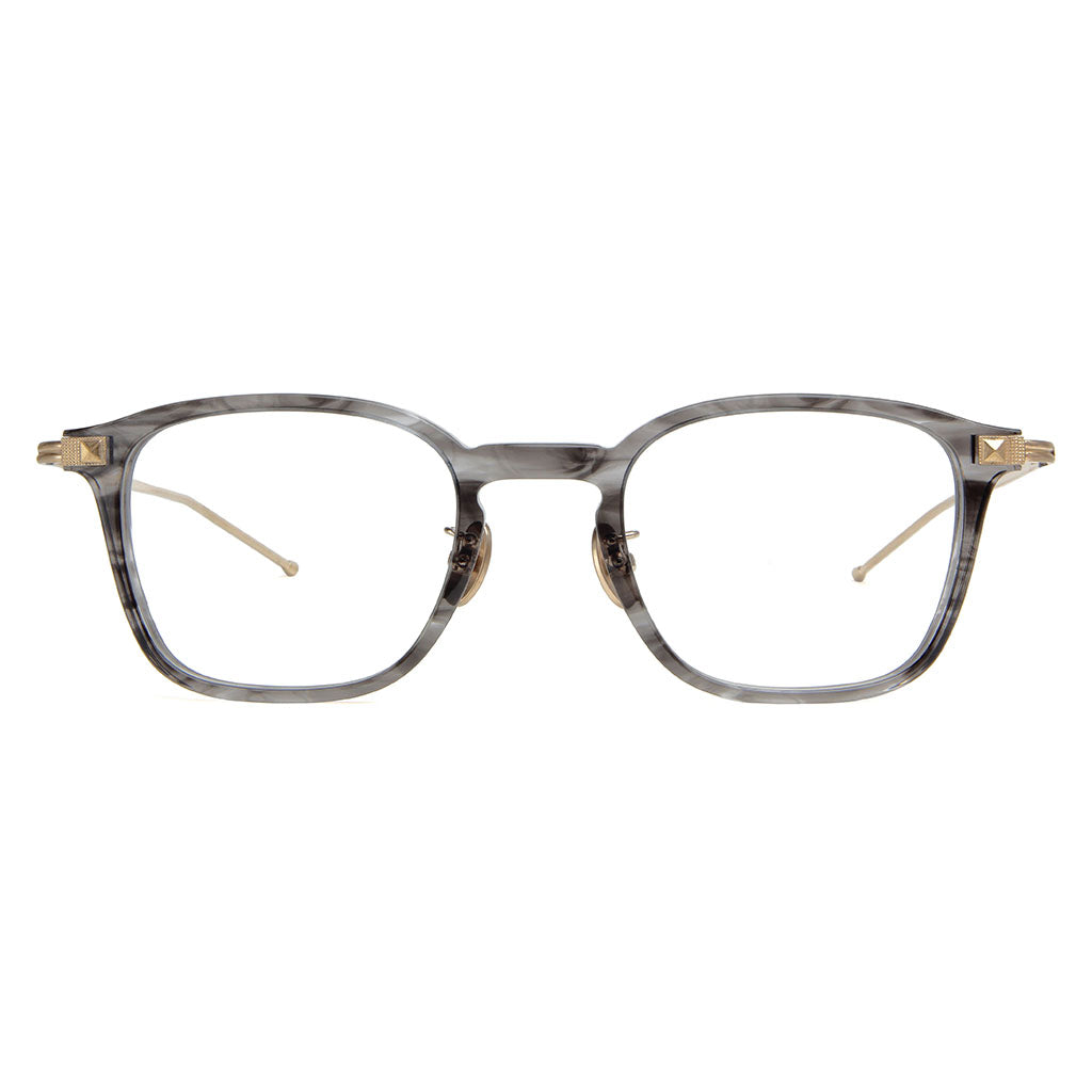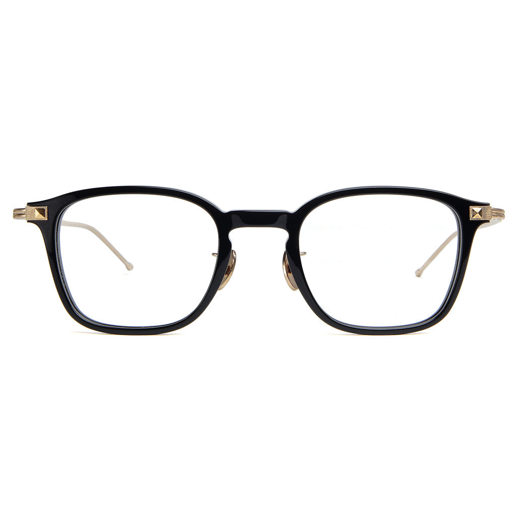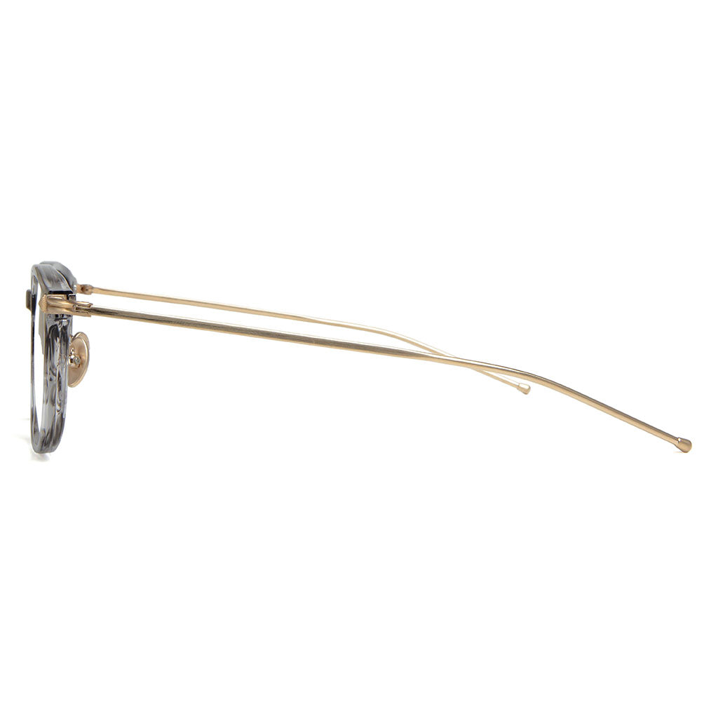 A model featuring front metal parts incorporating studs into the design.By combining beta-titanium temples with shape memory, the glasses frame is comfortable and holds well. Original titanium pads, which are grooved in a lattice shape, are resistant to slippage and have a structure that assumes long-time wearing. FRANCOIS is a classic Wellington design, which is easy for women to wear because of its wide range of top and bottom.
