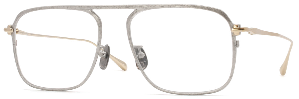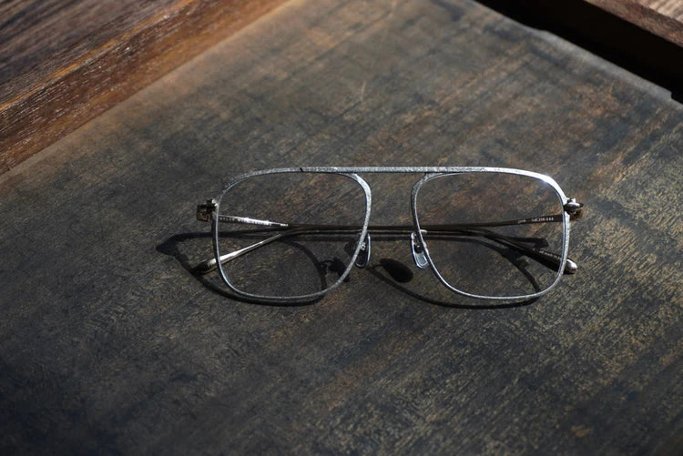 大きなレンズシェイプが、ナードさを醸し出すオールメタルモデル。強度面に不安を感じるハイブリッジを、一枚のチタン板から成型しその不安を払拭しています。時代を感じる個性的なスタイルを、懐古主義なアイウェアに終わらせず、実用性を備えた現代版ハイブリッジとして上質に仕立てられています。